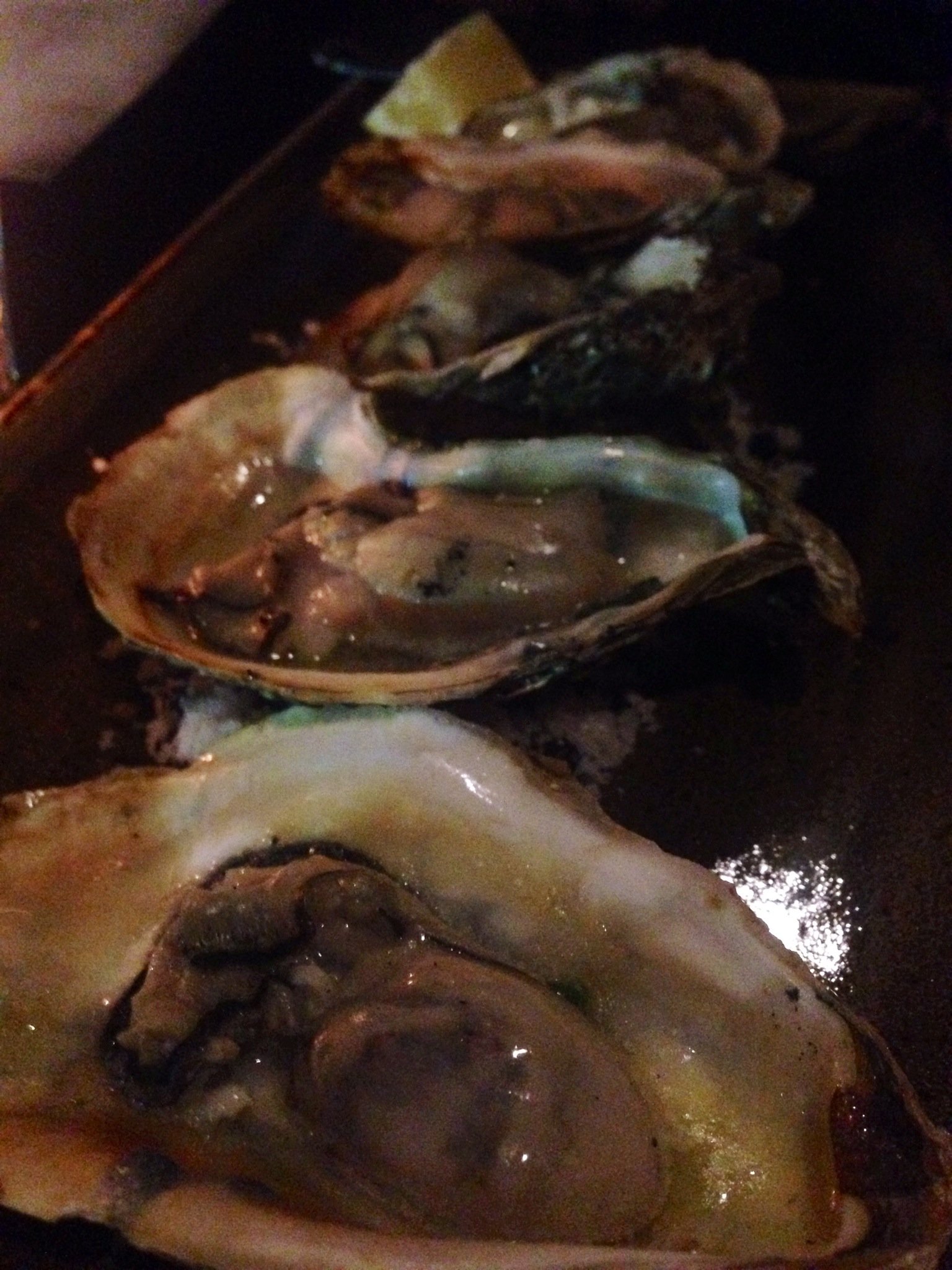- Oysters: grilled, served hot